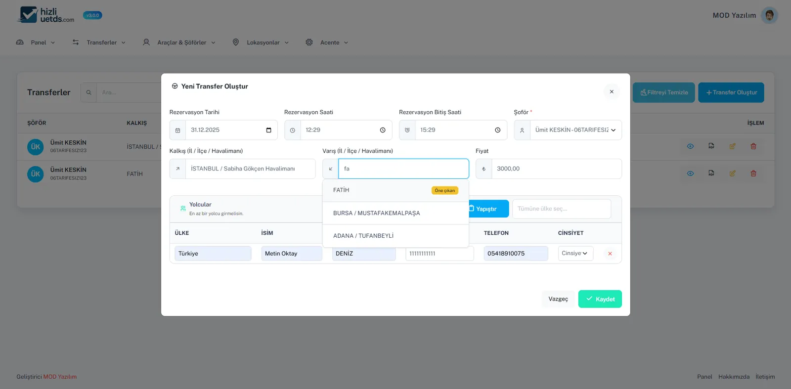 - Yolcu Bilgileri ve Kayıt Düzeni: Tek ekranda yolcu detayı yönetimi ve standartlaştırılmış kayıt akışları.